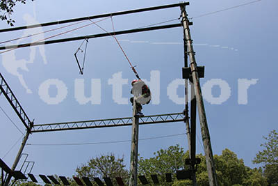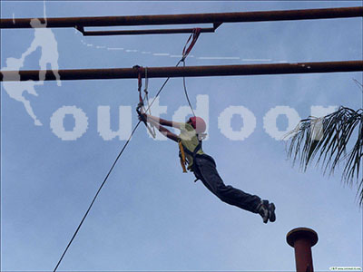 經過訓練后應立即檢查高空拓展器材設備部件結構是否仍能滿足訓練要求,如果螺絲松動或損壞等,應立即排除在完善之外,然后進行訓練。每次使用前由緊固件、相應的電線桿上的鋼絲繩、鋼絲繩夾、滑板車零件、鋼絲繩用蘭花螺絲、弓扣等安全用品易磨損,便于現場檢查高空拓展器材。當安全用品的磨損超過原來的應進行更新,鋼絲繩已斷開的股份,而斷開的股份數量超過鋼絲繩總數量的十分之一應進行更新,檢查員在工作中應佩戴安全帶和頭盔。