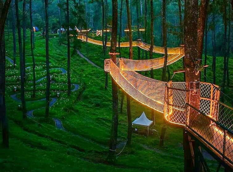這是一款沉浸式森林主題室外拓展游樂設(shè)備,以天然林木為支撐,打造出蜿蜒穿梭于林間的高空網(wǎng)道與平臺(tái),搭配 LED 燈帶在夜間點(diǎn)亮,營(yíng)造出夢(mèng)幻的星芒森林氛圍。主體采用高強(qiáng)度鍍鋅鋼絲網(wǎng)與鋼材框架構(gòu)建,既保障了結(jié)構(gòu)穩(wěn)固與游玩安全,又最大程度保留了森林的自然風(fēng)貌。設(shè)備集高空行走、林間穿越、夜間打卡于一體,適用于自然景區(qū)、森林營(yíng)地、研學(xué)基地等場(chǎng)景,讓游客在離地的棧道上感受森林的靜謐與壯闊,同時(shí)鍛煉平衡感、勇氣與探索精神,是白天親近自然、夜晚邂逅星光的理想游樂選擇。