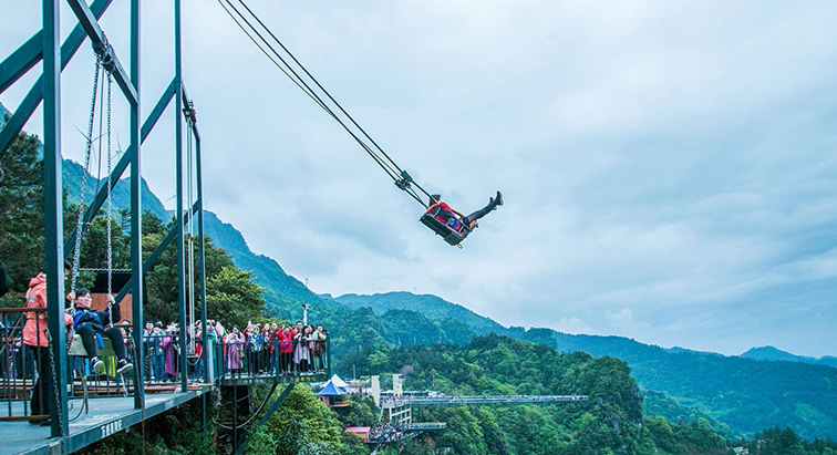 這是一款依托懸崖峽谷地貌打造的高空刺激類游樂設(shè)備,懸掛于數(shù)百米高的觀景平臺,以險峻的山林峽谷為背景,視覺沖擊力極強。
