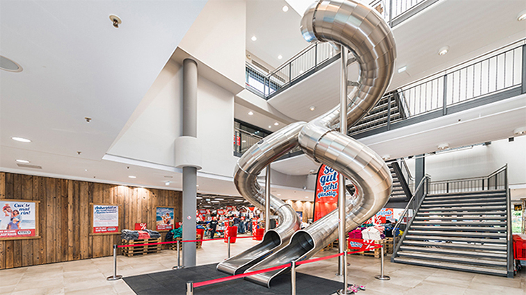 設(shè)備可根據(jù)建筑層高定制高度與軌道造型,適配商場中庭、購物中心、文創(chuàng)園區(qū)、親子綜合體等場景,是商業(yè)空間激活客流的標(biāo)志性游樂裝置。