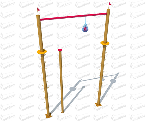 2、橫梁上方下垂一個繩網(wǎng),繩網(wǎng)中放置一皮球