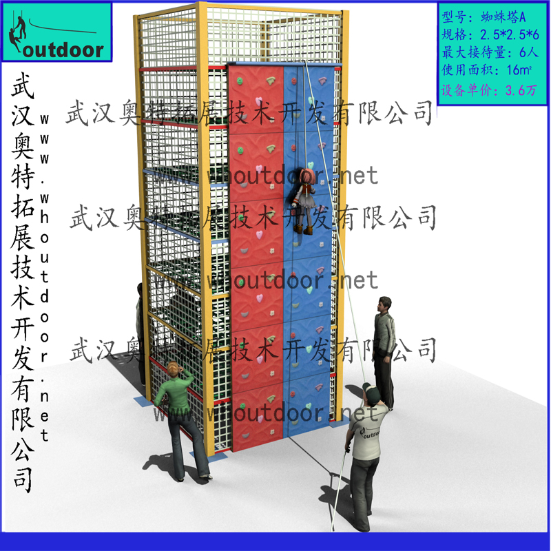 使用說明:蜘蛛塔不需要保護,兒童在保護網的作用下自由攀爬。兒童攀巖小孩子需要穿上保護裝備在教練的保護下進行攀爬