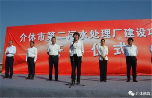 趙輝在致辭中指出,介休市第二污水處理廠是打好打贏水污染防治攻堅戰的基礎工程,是介休市今年的重點民生工程。希望各相關部門要按照特事特辦、急事急辦的原則,創造性開展工作,加強協作配合,及時跟進、主動服務,加快解決手續辦理、資金需求等突出問題,為工程加快建設提供高效便捷的服務保障,努力把污水處理廠提標改造工程建成惠及廣大人民群眾的“民生工程”、滿足城市擴容發展的“保障工程”、守護藍天碧水的“優質工程”。同時,施工方要嚴格落實安全環保責任,拿出“工匠”精神,做好項目工藝提標改造工程的同時,加快建設進度,保質保量按時間節點推進,力爭早日竣工發揮作用。
